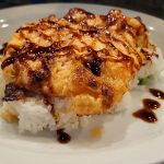 Santal Roll: A Flavorful Fusion of Spicy Crab, Shrimp Tempura, and Fresh Salmon