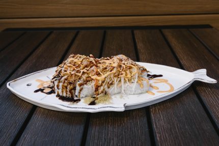 Outside: chopped chicken teriyaki drizzled with our very own teriyaki sauce